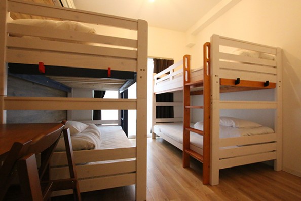 男女混合ドミトリーに併設された、ワイドサイズの2段ベッドを設置したドミトリーです。
