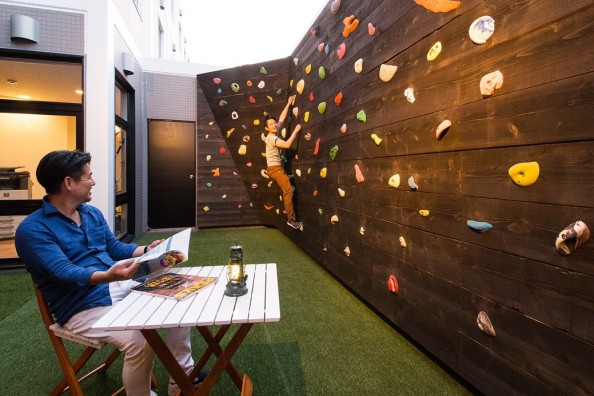 2015年7月、浜松の中心街からほど近い曳馬にアウトドアをテーマにしたシェア住居として開業致しました。施設内にはボルダリングやキャンプができる芝生スペースがあり、一風変わったシェアハウスとして注目されています。