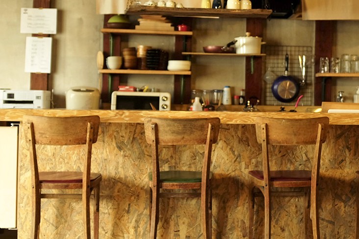 温かな日差しが差し込む、実家の食卓を思い出す懐かしい空間のなかで、料理をしたりゲスト同士で食事を楽しむ場所としてもおすすめです。