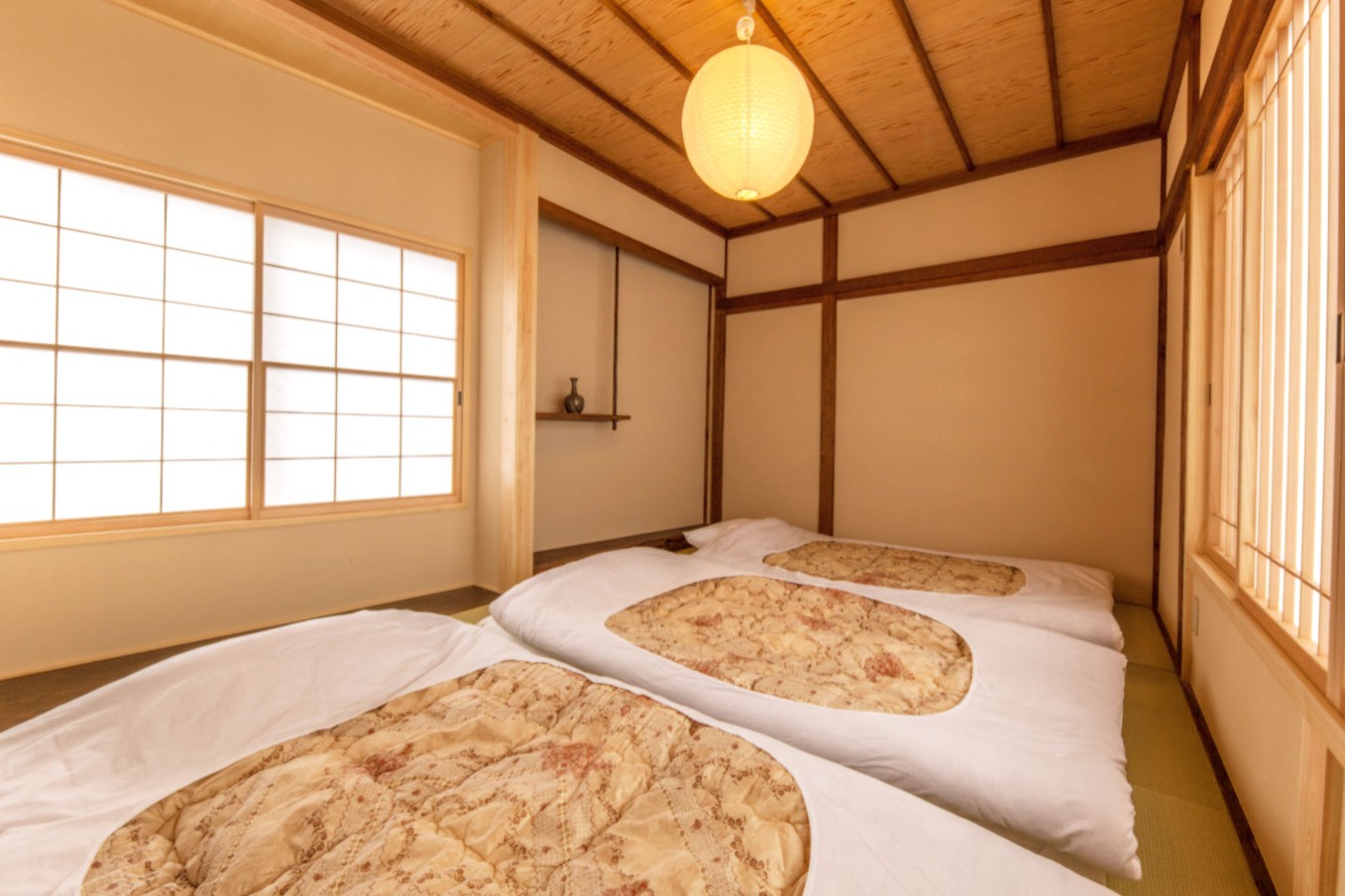 cup of tea の和室は、お寺の借景や純和風の中庭が眺められるお部屋になっています。最大3名様までご利用可能で、カップルやグループ、ご家族での滞在におすすめです。