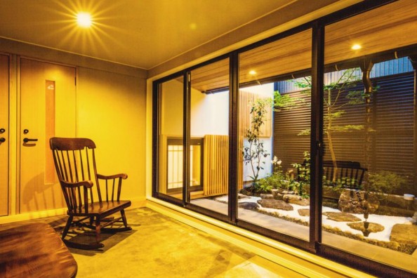 共有エリアは、静かに中庭の眺める雑談室もございます。