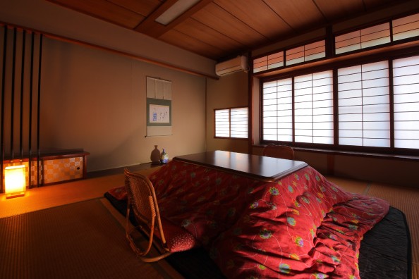 夏や館内に簾(すだれ)や葦簀(よしず)を使用しております。冬はこたつや湯たんぽなどの昔ながらアイテムで寒さをしのげます。