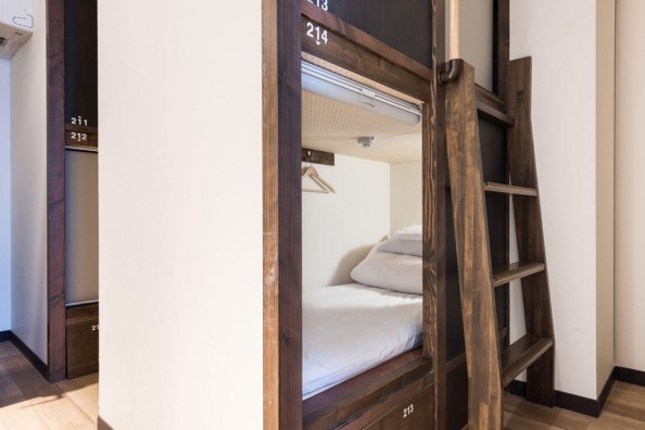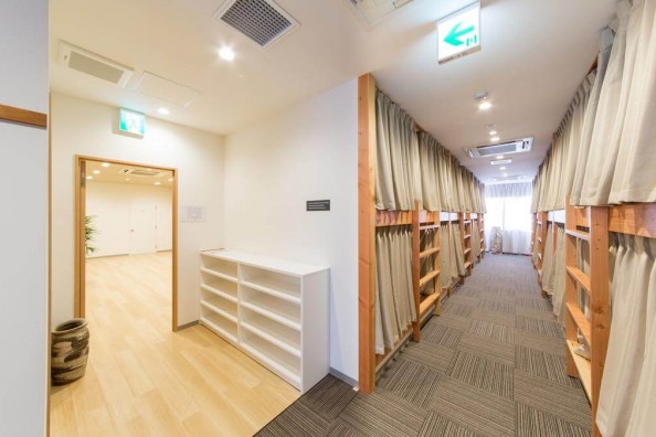 また全ベッドにはコンセント・照明・布団・枕・カーテン・衣類ハンガー・スリッパ・棚を完備。Wi-Fi、貴重品ボックスも無料で利用いただけます。