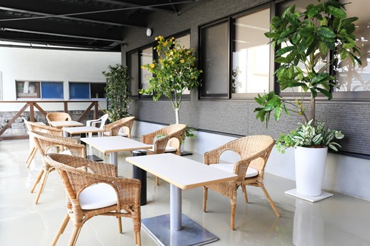 館内は全室禁煙ですが、喫煙スペースを入り口に設けております。