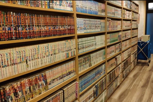 談話室と廊下の棚には、マンガコミック・雑誌を多数置いております。ご自由にお読みください。