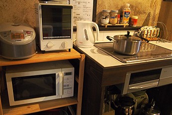 共同キッチンには冷蔵庫・IHヒーター・調理器具・什器などはもちろん、必要な調味料も揃えています。