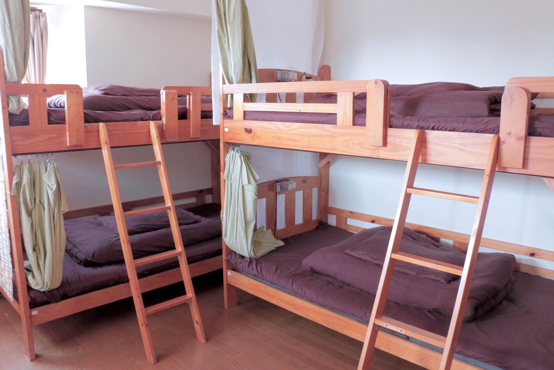 ドミトリールームは、大部屋に二段ベッドが複数配置されたタイプの相部屋です。男女別に分かれており、各ベッドにはカーテンと読書灯が付いています。
