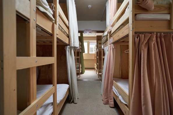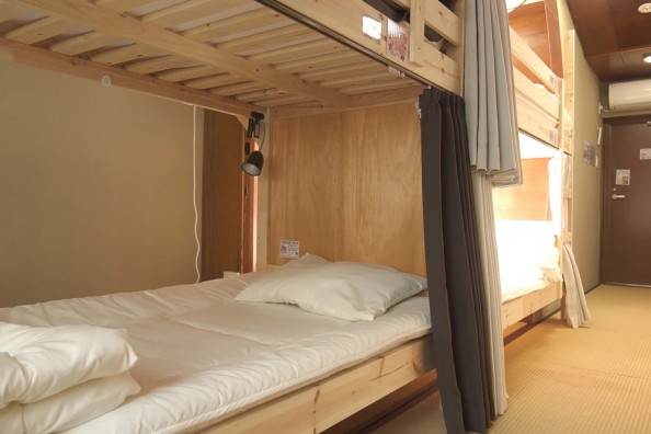 いくつかの2段ベッドが設置され、それぞれにコンセント・読書灯・カーテンが備えてあります。