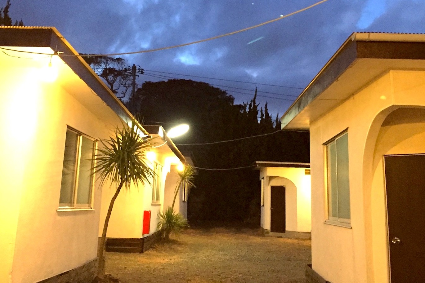 国道135号線沿いにあり、白浜海岸まで徒歩2分、コンビニまで徒歩5分ととても便利な立地です。一般的な相部屋のゲストハウスとは違い、BBQもできるコテージタイプのゲストハウスになっています。