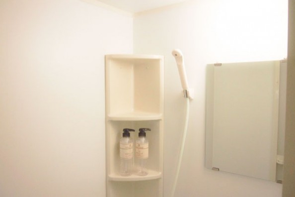 シャワールームを完備。シャンプーやコンディショナーも備え付けられています。