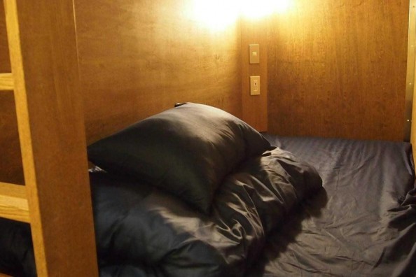 ドミトリーはブラインダー付き二段ベッドで、男女混同(12人部屋)と女性専用(6人部屋)からお選びいただけます。