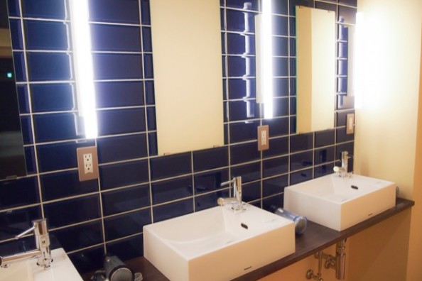タイル張りのオシャレな洗面台には、それぞれコンセントとドライヤーを完備しております。