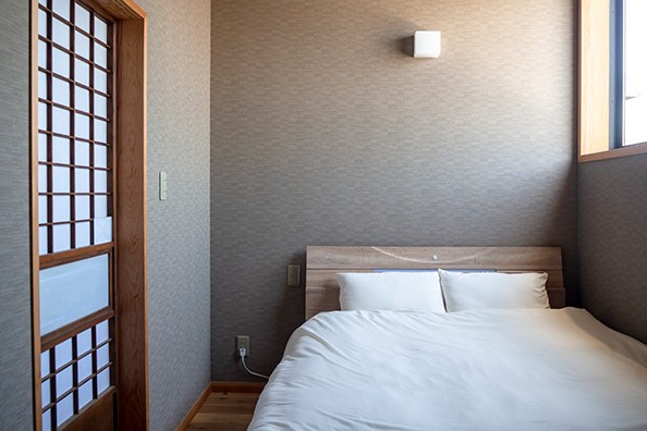ダブルベッドを設置した個室タイプのお部屋になります。(シャワールーム・トイレ付き)