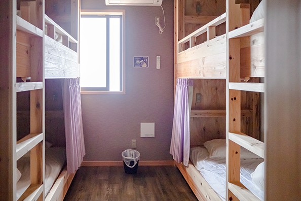 こちらのはお部屋の相部屋です。ドミトリーの二段ベッドには、照明・コンセントを完備。