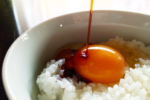 別途料金にて、岡山名物・高級食材黄ニラを漬け込んだ醤油を使った「卵かけご飯」を味わうことができます。おかわりは自由!(インスタントみそ汁付。セルフサービス)