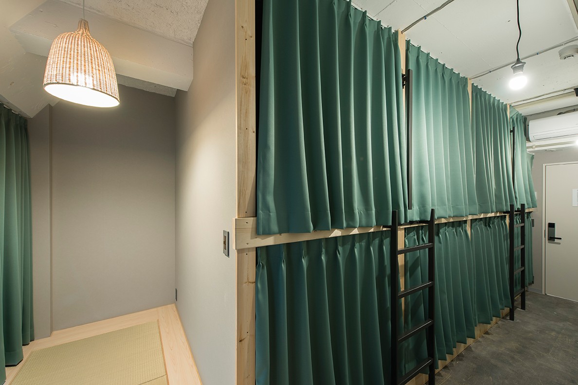 女性専用ドミトリーもあり、初めての方もご利用いただきやすい環境です。それぞれカーテンで仕切ることが出来ますのでプライバシーも守られます。またベッドには読書灯もございますので本を読んだり、映画をみたりとゆったりお過ごし頂けます。