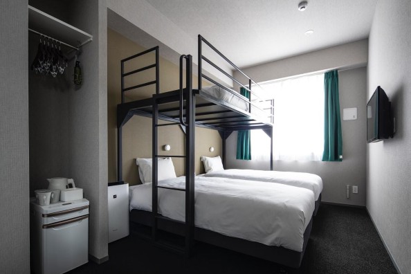 室内にバス・トイレが完備されたロフト付きダブルルームとツインルームがございます。タオル・冷蔵庫・電気ケトル・空気清浄機・読書灯・テレビ・Free Wi-Fiもご利用いただけます。ご家族や少人数の宿泊におすすめです。