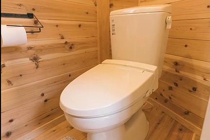 清潔感のある共用のトイレは、ウォシュレット付きで消臭スプレーを完備。