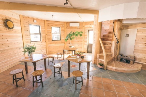 木の香り漂うフリースペースでは、ゲスト同士が交流できる場となっております。旅の情報交換をしたり、共通の話題などでコミュニケーションをお楽しむください。