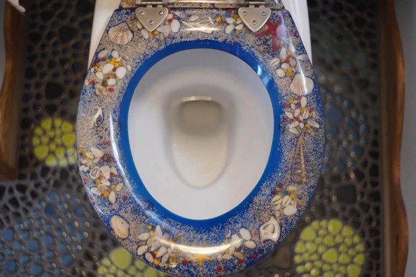 室戸の灯台を描いたむろトイレにはジオパークの石と弘法大使が!?本館別館共に色んなデザインのトイレがあるのでぜひ探検してください♪