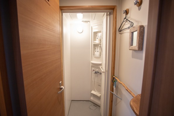 2018年8月にopenしたお部屋。四万十産の杉と檜をふんだんに使用して、ベッドを手作りしました。各ベッドのスペースがとっても広く、ベッドにスーツケースまで入れられちゃいます。ドライフラワーで作った照明と、Wガーゼのカーテンも手作りです♪