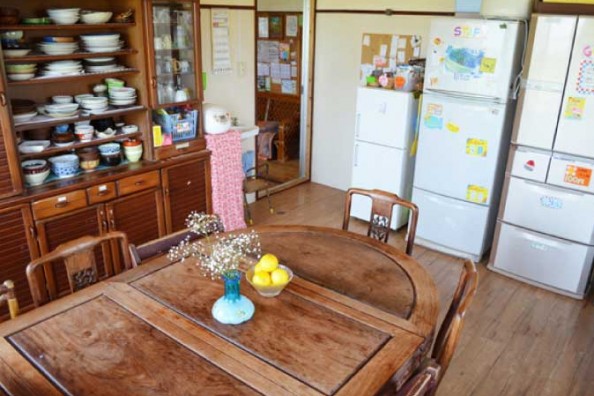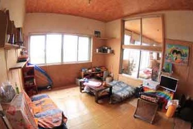 ドミトリ―は男女混合ですが、ゆんたくスペースもスタッフルームも同じ繋がった空間にいるので安心です。消灯の23:20までは多少賑やかです クーラーではなく扇風機なのでご了承ください。