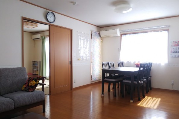 食事をしたり、ソファーでくつろげるリビングがございます。エアコンも完備。