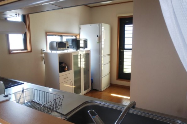 キッチンにある冷蔵庫、トースター、電子レンジ、調理器具などは自由に使うことができ、コーヒー・紅茶・緑茶のフリードリンクサービスもございます。キッチンカウンターとなってますので簡単な料理をしながらご家族や友人と会話も弾みます。