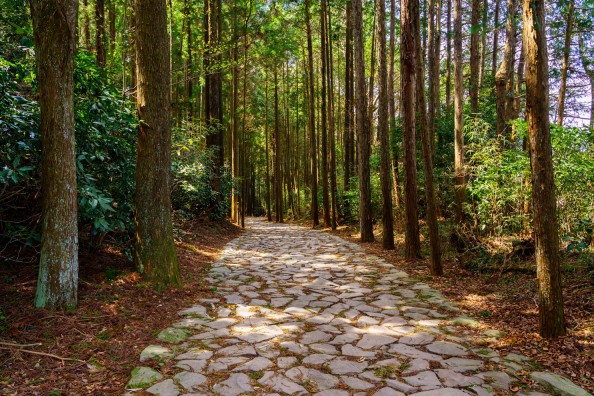 江戸時代末期に敷かれた石畳を復元した道で、金谷坂を上りきって徒歩10分ほどの場所にも石畳(菊川坂)があります。