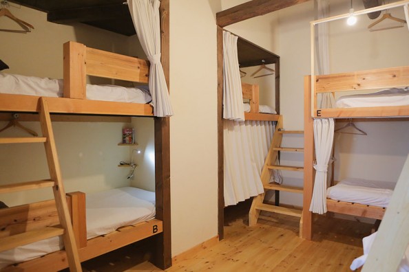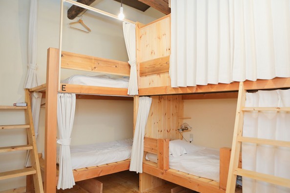 客室は、1~3名様の個室(5室)をはじめ、女性専用ドミトリー(8人部屋)、男女混合ドミトリー(6人部屋)を完備。それぞれ、漆喰の壁と昔ながらの和室になった個室、既存の天井を壊し梁が見える広々としたドミトリー部屋と、個性豊かな空間が落ち着いた空間を演出しています。