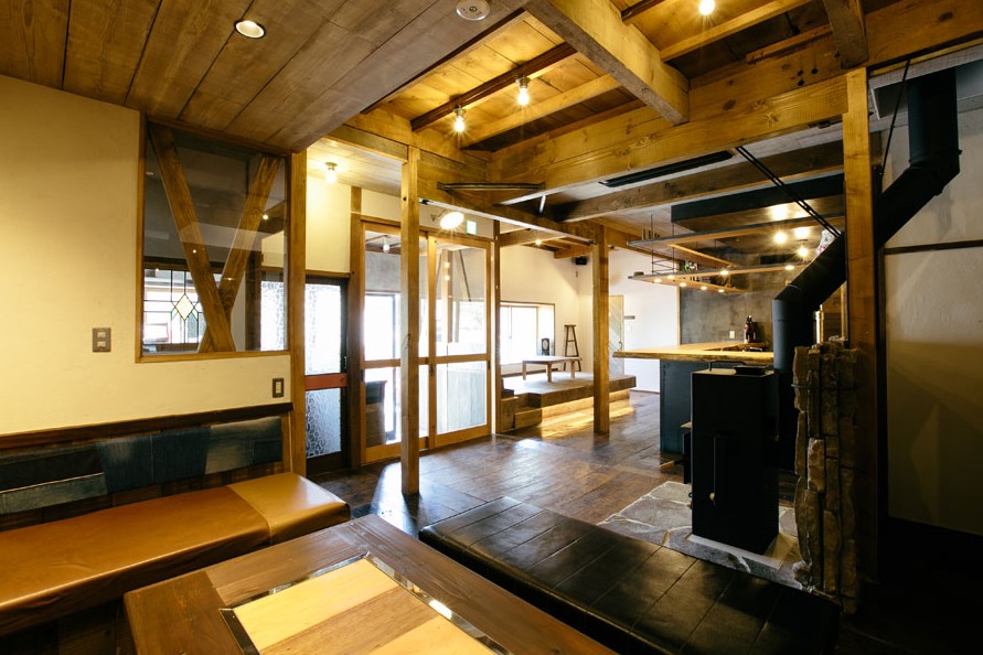 建物内にある床材や小物などは、解体中の家や空き家などを駆け回って収集したもので、こだわりの空間となっています。