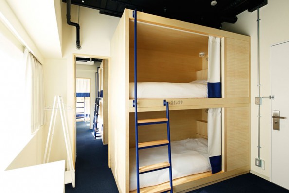 2段ベッド2つと洗面が設えられた個室タイプ。シャワー・トイレは共用なので、客室内はシンプルな機能に抑えられています。グループ旅行や家族旅行におすすめ。