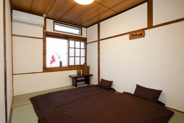 和室に布団を敷いてお休みいただくタイプのお部屋となっています。6畳で最大3名様まで宿泊でき、お一人様でのご利用も可能です。