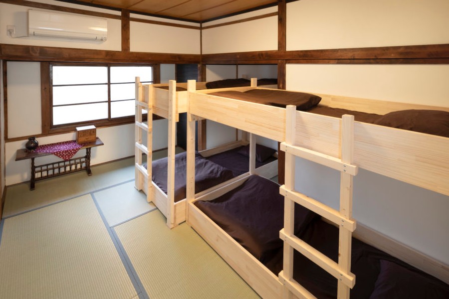 寝室は、男女混同ドミトリー、女性専用ドミトリー、個室の3部屋をご用意しリーズナブルにご利用いただけます。